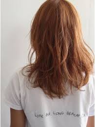 ミディアムレイヤー オレンジベージュ 3dカラー 髪色 オレンジ ヘアカット オレンジ ヘアカラー